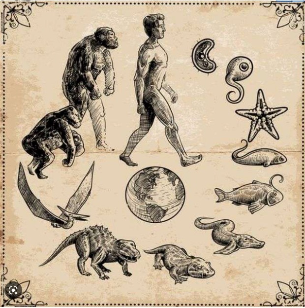 I begynnelsen fanns aminosyror och proteiner. Den första livsformen uppstod för miljarder år sedan på något mirakulöst sätt och blev en bakteriecell. Denna måste ha haft förmåga att dela sig och i nästa skede uppstod flercelliga livsformer. Under de följande 4 miljarder åren gick evolutionen vidare och utvecklade allt mer komplexa varelser med början i haven och sedan på land. Människokroppen är sammansatt av 10 000 biljoner samverkande celler. Allt styrs av gener och det DNA som finns lagrat i cellkärnan.